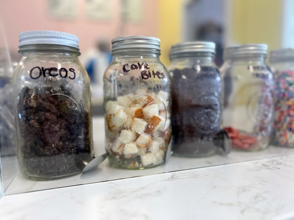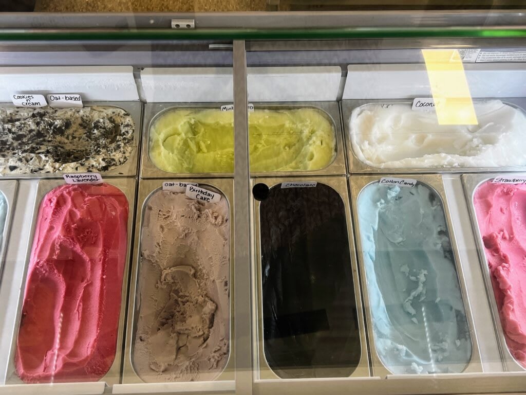 My favorite flavor is Cranberry - we only sell this at Christmas time. It is just the perfect combination of sweet and tart. As far as all-year-round flavors, I like Peach Mango, and Pina Colada. Apple Pie is a good one, too! For the sorbet, I love the Mint Mojito and the Chocolate Oatly soft serve is delicious!