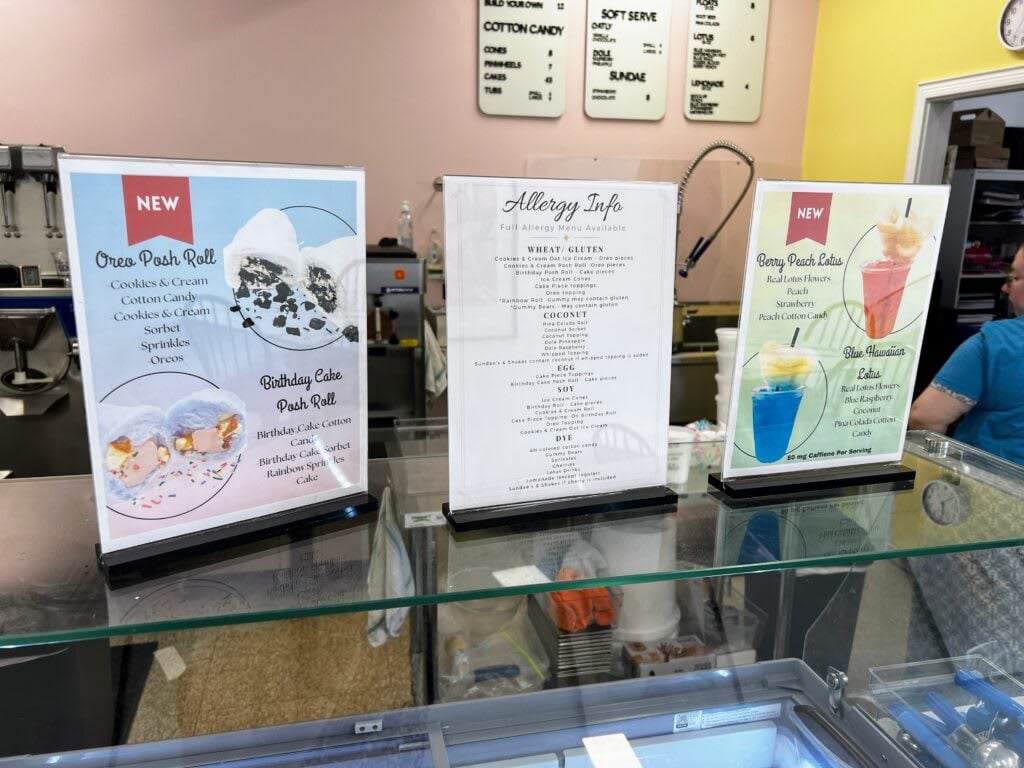 And that’s not all—Posh Fairy Floss also offers allergen-friendly real-fruit sorbet (handmade in-house!), soft serve ice cream, dairy-free milkshakes and sundaes, and lotus natural energy drinks too!